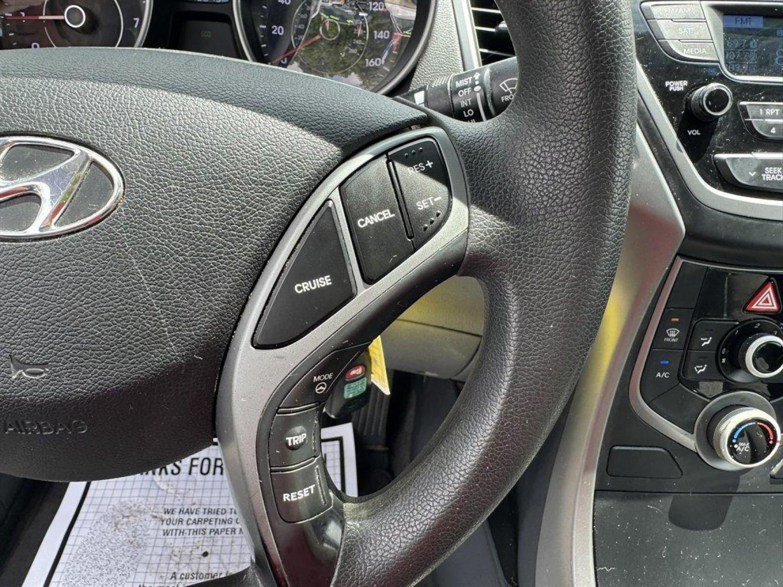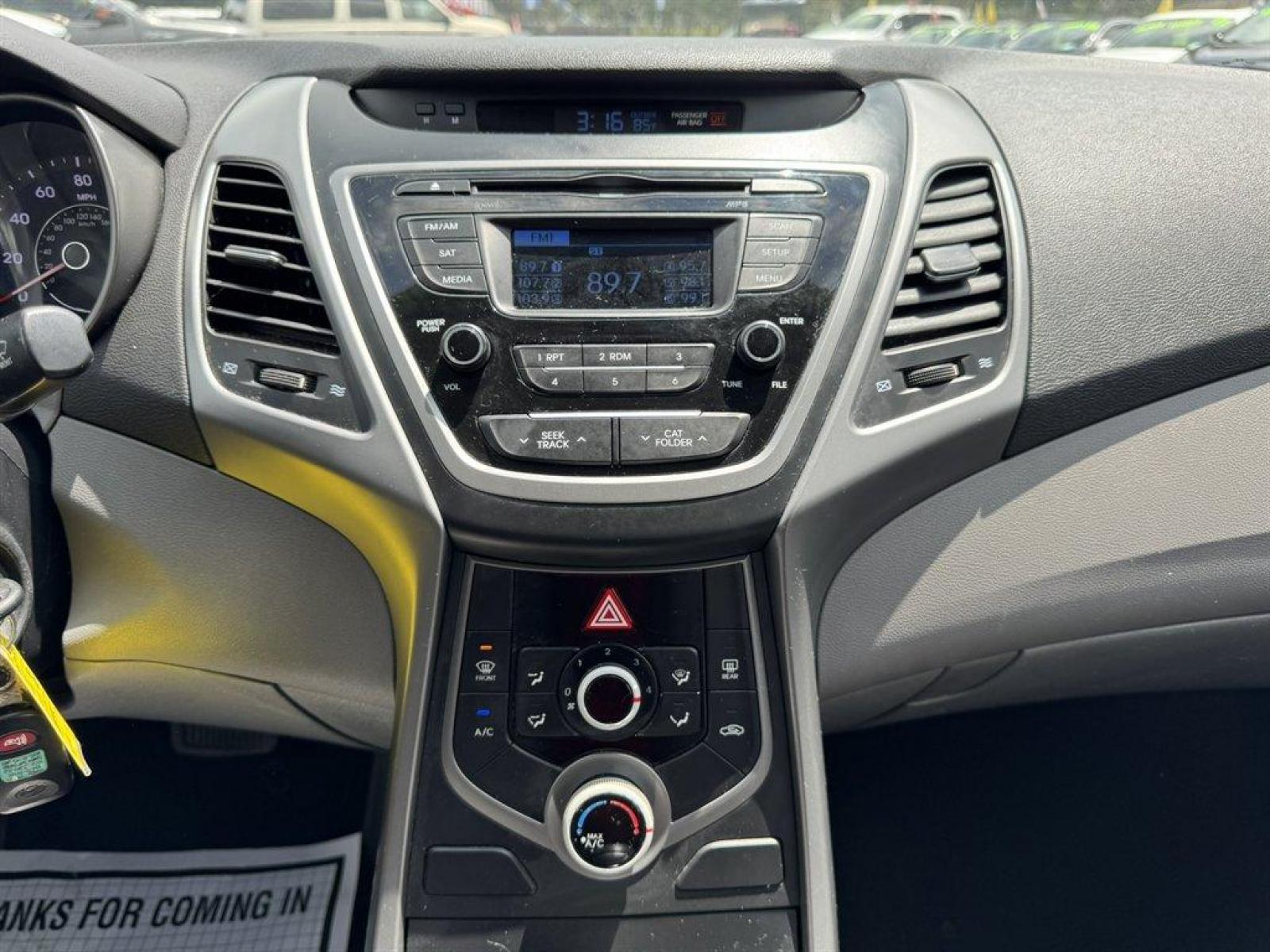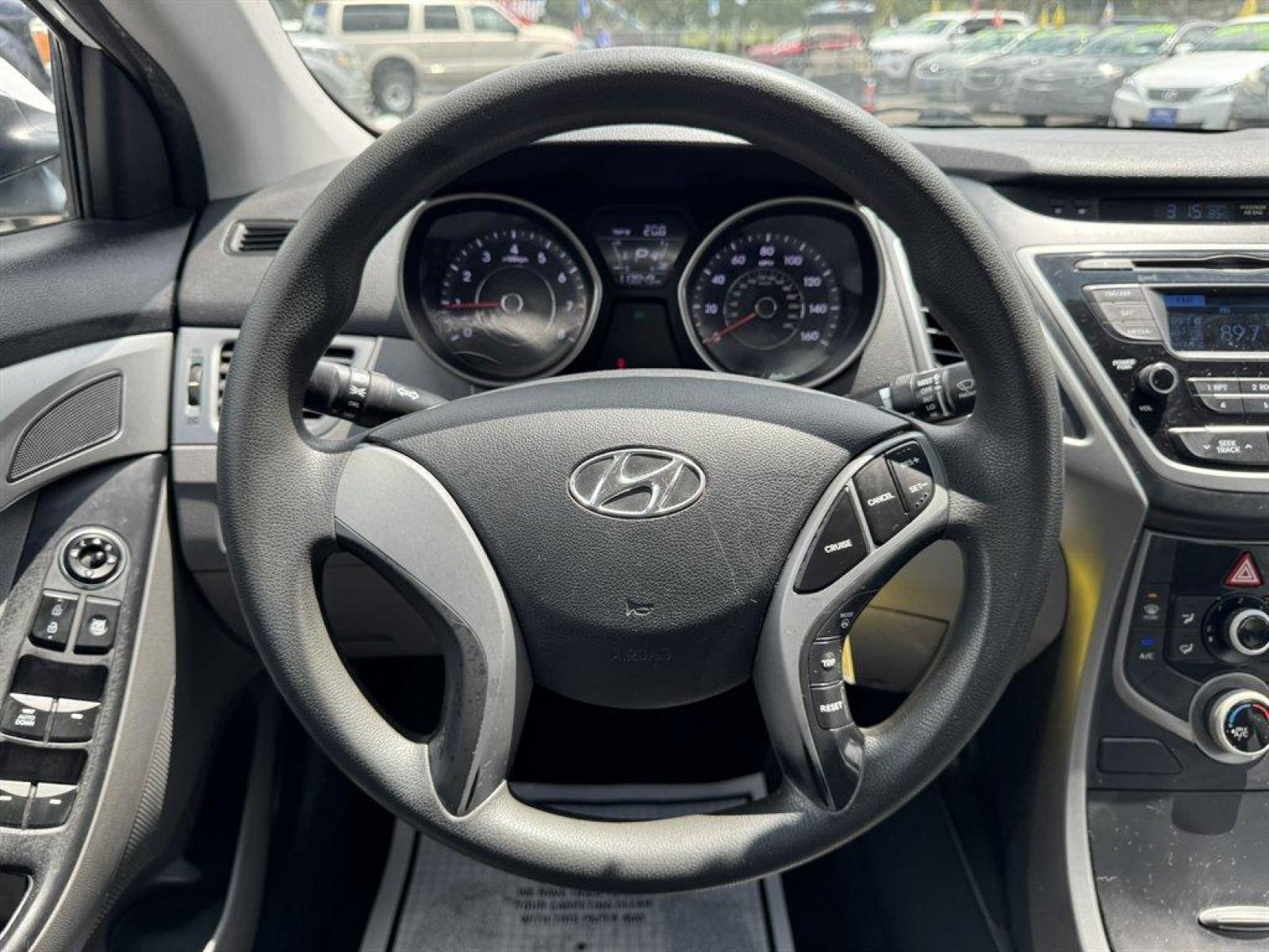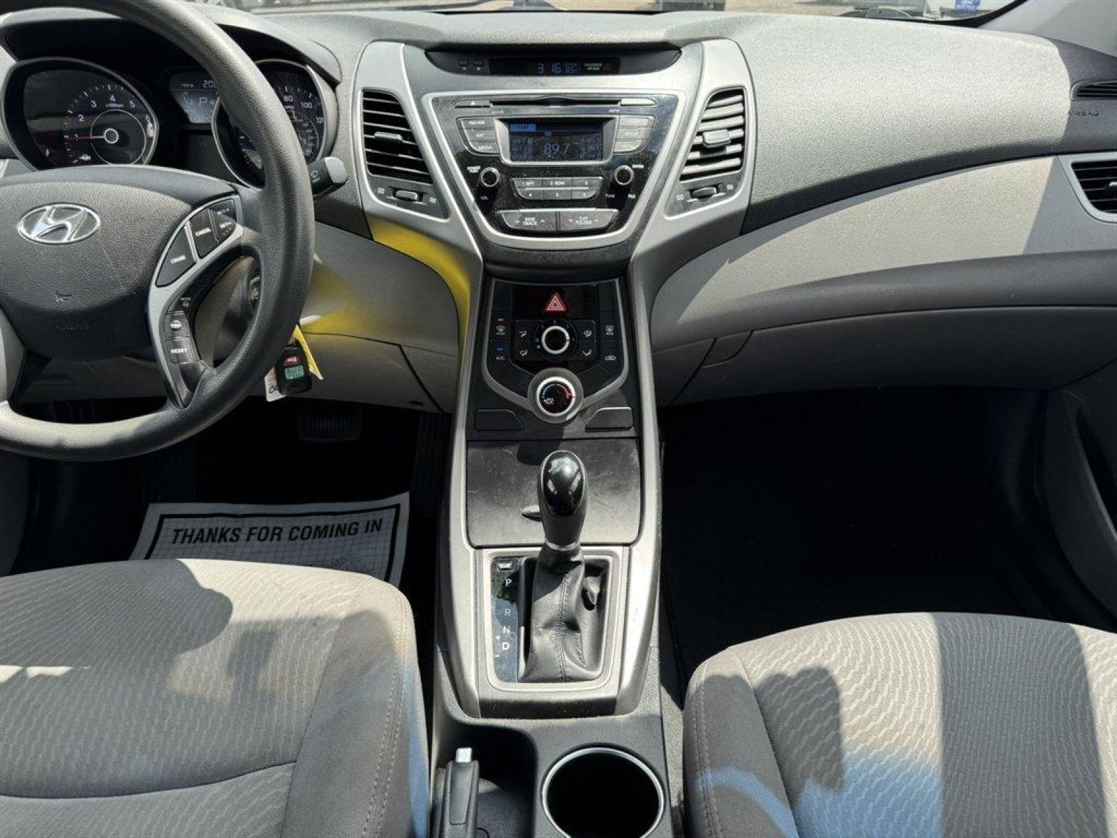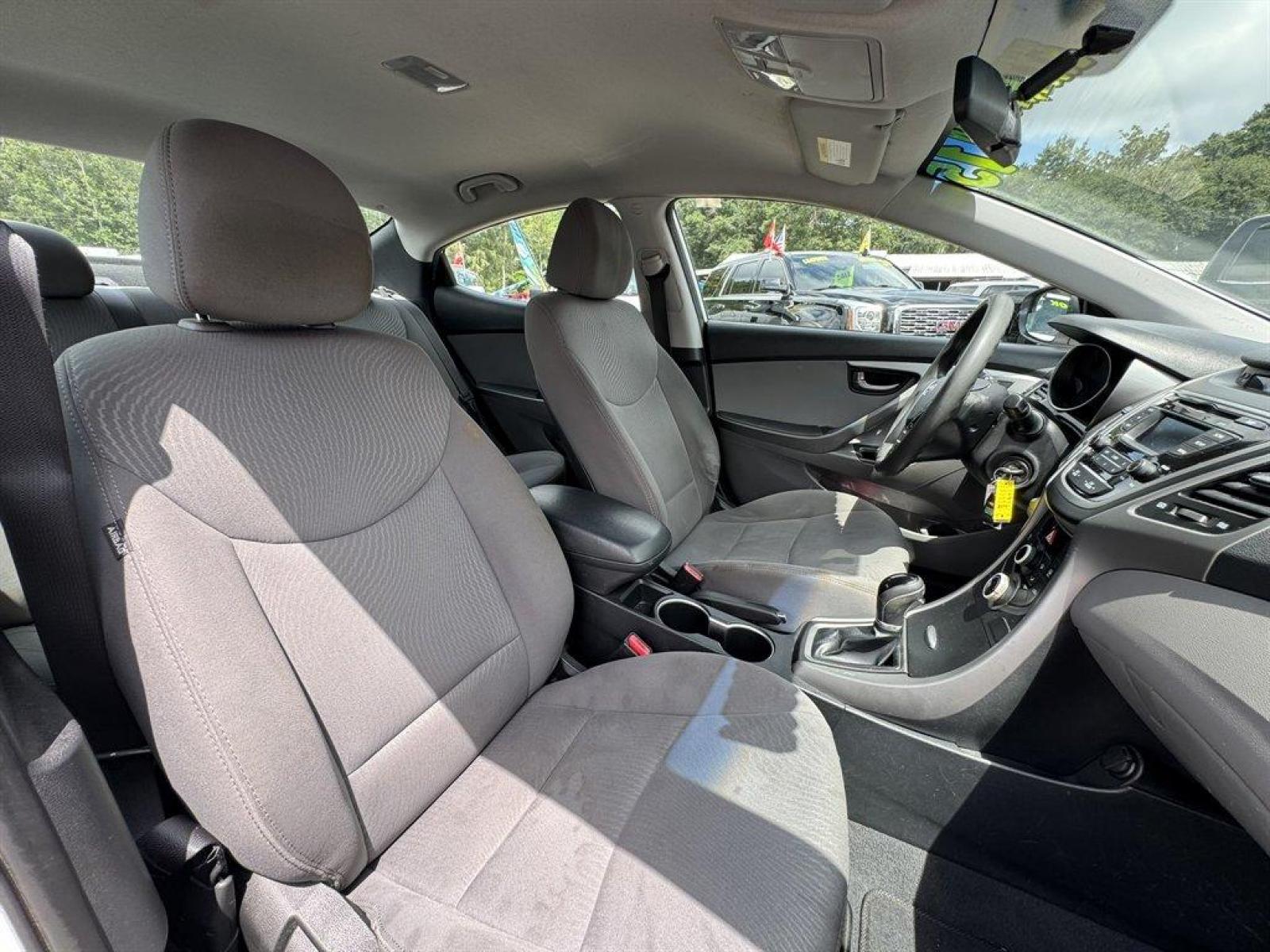 Special Internet Price! 2015 Hyundai Elantra with AM/FM radio, Keyless entry, Cloth interior, Powered windows, Powered door locks, Plus more! *MUST PRINT AND PRESENT THIS PRICE AS A COUPON TO GET THE PRICE SHOWN ONLINE. Offer good December 1, 2023 through March 1, 2024. May not be combined with any other coupons, discounts, or promotions. Limit one coupon per person. Coupon does not apply to prior purchases. Other Restrictions may apply. Price does not include tax, tag, IMF fee and $125 closing fee. Current market value may or may not affect pricing. Dealer reserves the right to change the price at any time, with or without notice.Out of state buyers are responsible for all state, county, city taxes and fees, as well as title/registration fees in the state that the vehicle will be registered, these may have to be financed into the loan or paid for in cash at time of purchase. Depending on the age of the vehicle, normal wear and tear should be anticipated. We may or may not have all the keys and floor mats. We will be happy to obtain extra ones for you at our dealer cost. It is the customer’s sole responsibility to verify the existence and condition of any equipment listed. Any alterations to the vehicle after purchase may or will void any warranty or services due if not approved before alterations are done. All pricing and details are believed to be accurate, but we do not warrant or guarantee such accuracy. Call the dealership for more details.